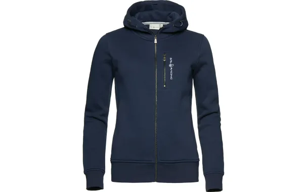 The Women’s Gale Zip Hood from Sail Racing ~ in cotton and polyester. Ribbed cuffs at sleeve end and bottom hem. Adjustable hood and chest pocket with zipper. Open hand pockets on each side and metal zipper at front. Sail Racing embroidery logo at chest and a bloc logo at the top of the hood.