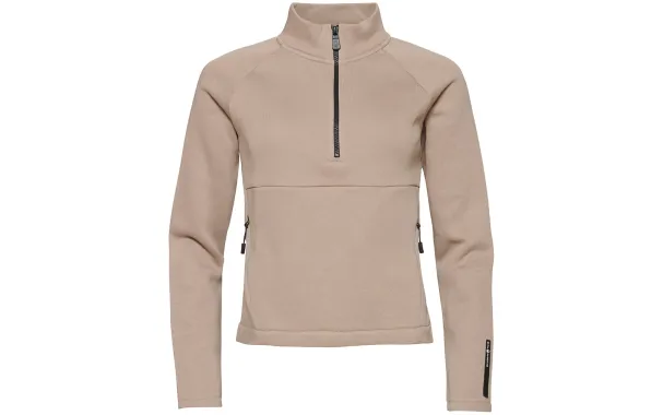 W Race T-Neck made in 80% cotton and 20% polyester. Pocket at front with zippers. Half zip at front. Rubber bloc logo at back yoke and silicon label at left sleeve end.
