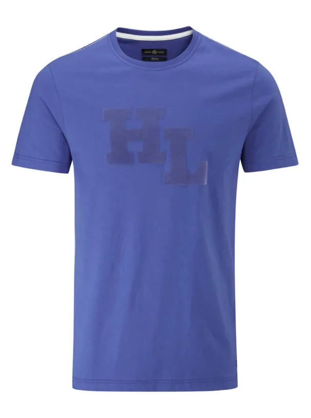 Regular fit. Pure cotton. Ribbed crew neckline. ‘HL’ initials printed in varsity style at chest in felt.